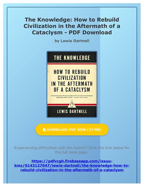 Download The Knowledge How to Rebuild Civilization in the Aftermath of a Cataclysm Reader online is a convenient and frugal way to read The Knowledge How to Rebuild Civilization in the Aftermath of a Cataclysm you love right from the comfort of your own home. Yes, there sites where you can get Reader "for free" but the ones listed below are clean from viruses and completely legal to use.
